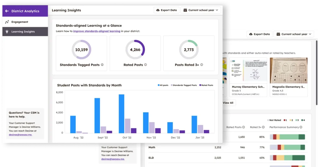 Seesaw brings student work, feedback and curriculum alignment together to support group-wide visibility, giving leaders a clearer picture of what is happening in schools and classrooms.