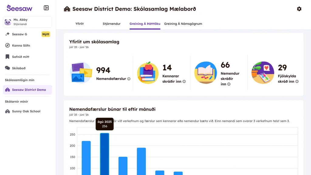 Seesaw styður grunnskóla við að skrá, meta og deila námi í gegnum einfaldan, heildrænan vettvang, sem nú er fáanlegur með algerlega staðfærðu íslensku viðmóti. Þetta gerir námið sýnilegt, styrkir þátttöku fjölskyldunnar og gefur hverju barni rödd í námi sínu, en fellur jafnframt vel að daglegu